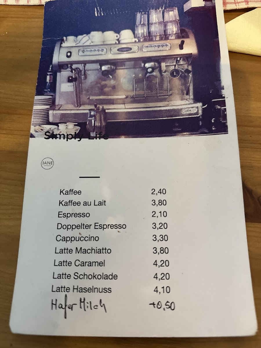 The menu at Simply Life offers a variety of options suited for breakfast, coffee breaks, and light meals. It features a selection of both food and drinks, catering to diverse dietary preferences including vegan and vegetarian choices.